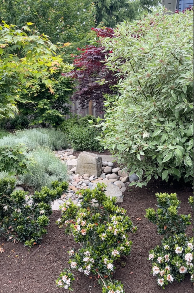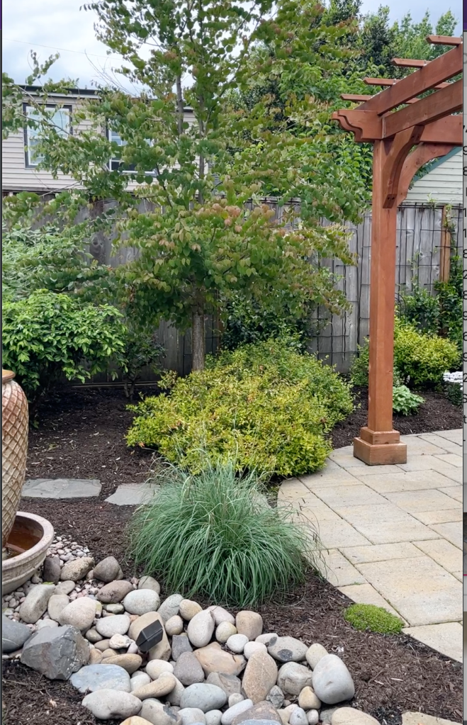 Opt for native plants in your landscaping design. Native plants are well-suited to the local climate and require less water, fertilizer, and maintenance. This means they are going to keep your yard looking fresh and be far lower maintenance than a traditional grass lawn. They also provide a habitat for local wildlife and promote biodiversity. Please refer to our blog post Gardening With A Purpose: 10 Keystone Plants to Elevate Biodiversity and Support Local Ecosystems for your native plant inspiration .